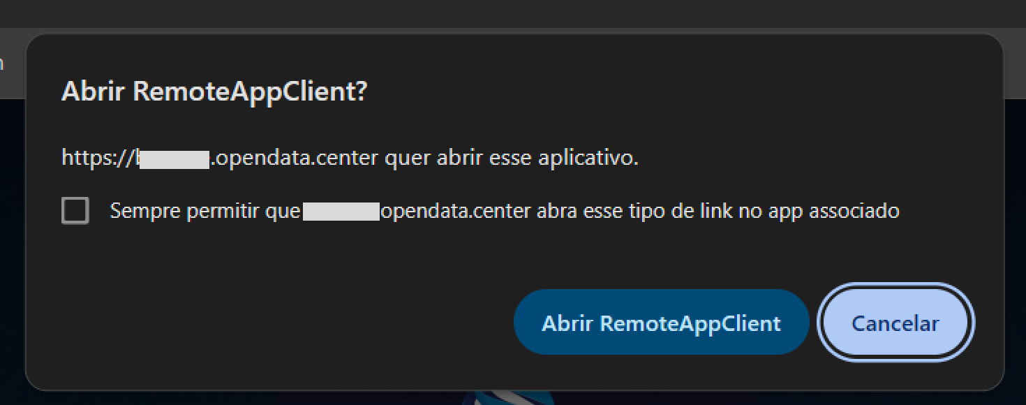 Marque a flag "Sempre permitir que nomedaempresa.opendata.center abra esse tipo de link no app associado." Para que essa mensagem não seja mais exibida.