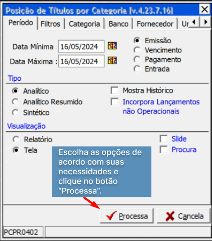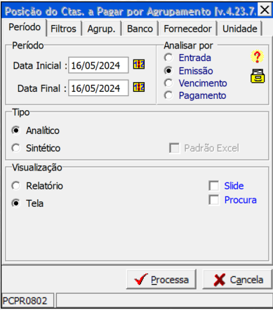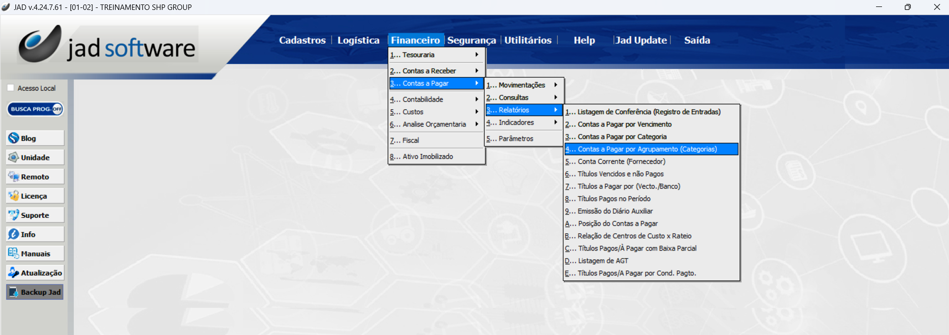 Financeiro > Contas a Pagar > Relatórios > Contas a Pagar por Agrupamento (Categoria)