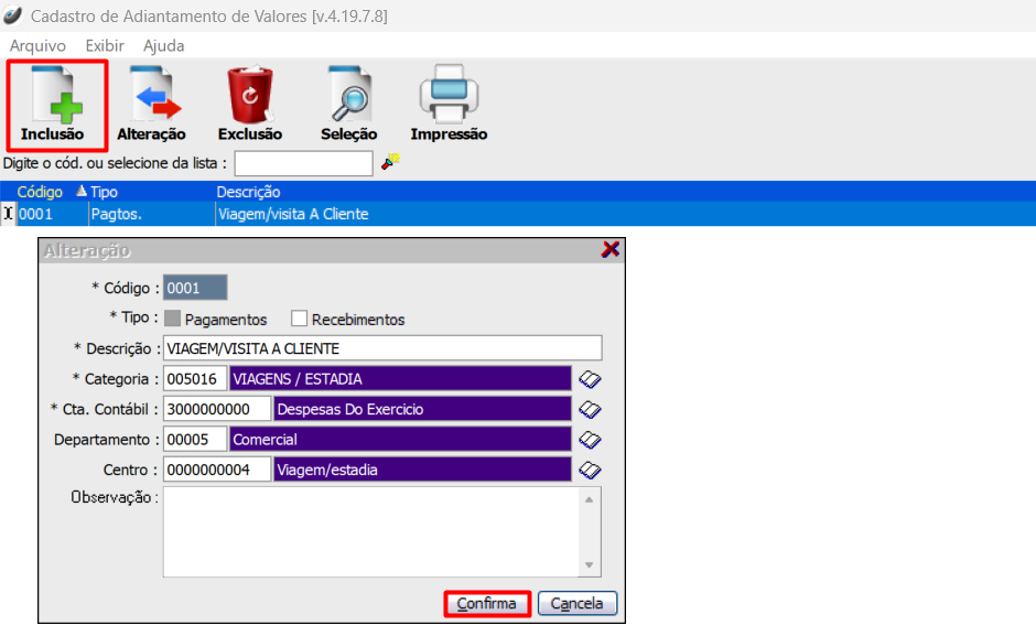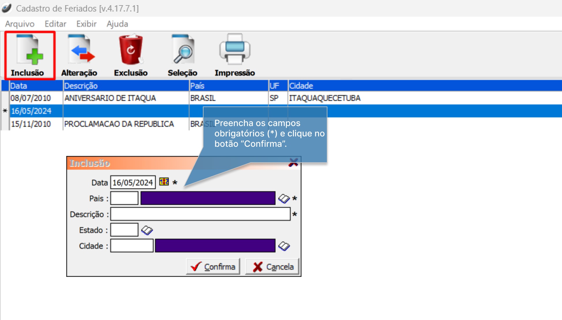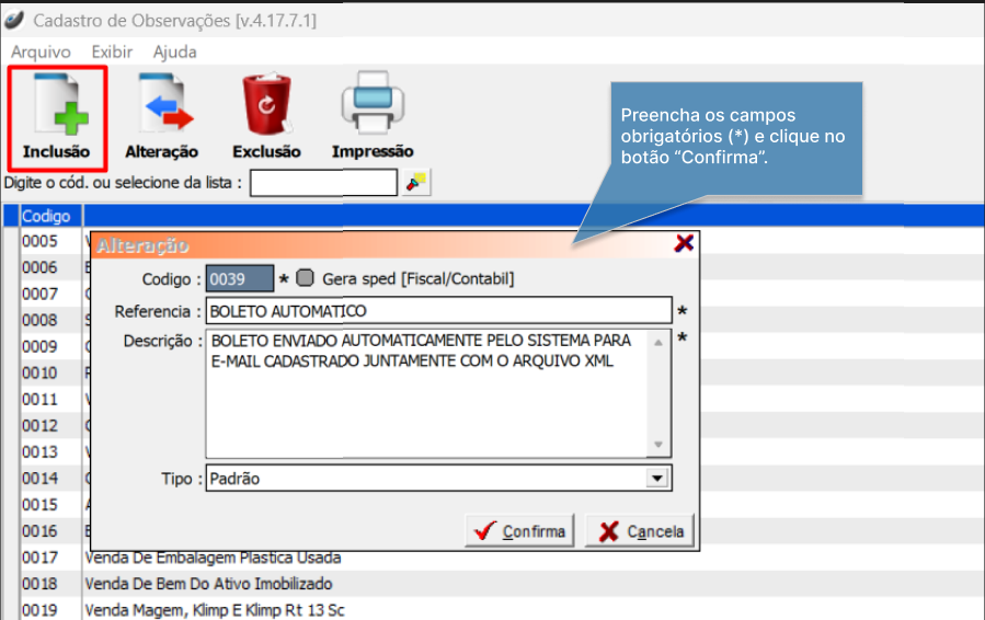 Após o preenchimento desses campos, clique no botão "Confirma"