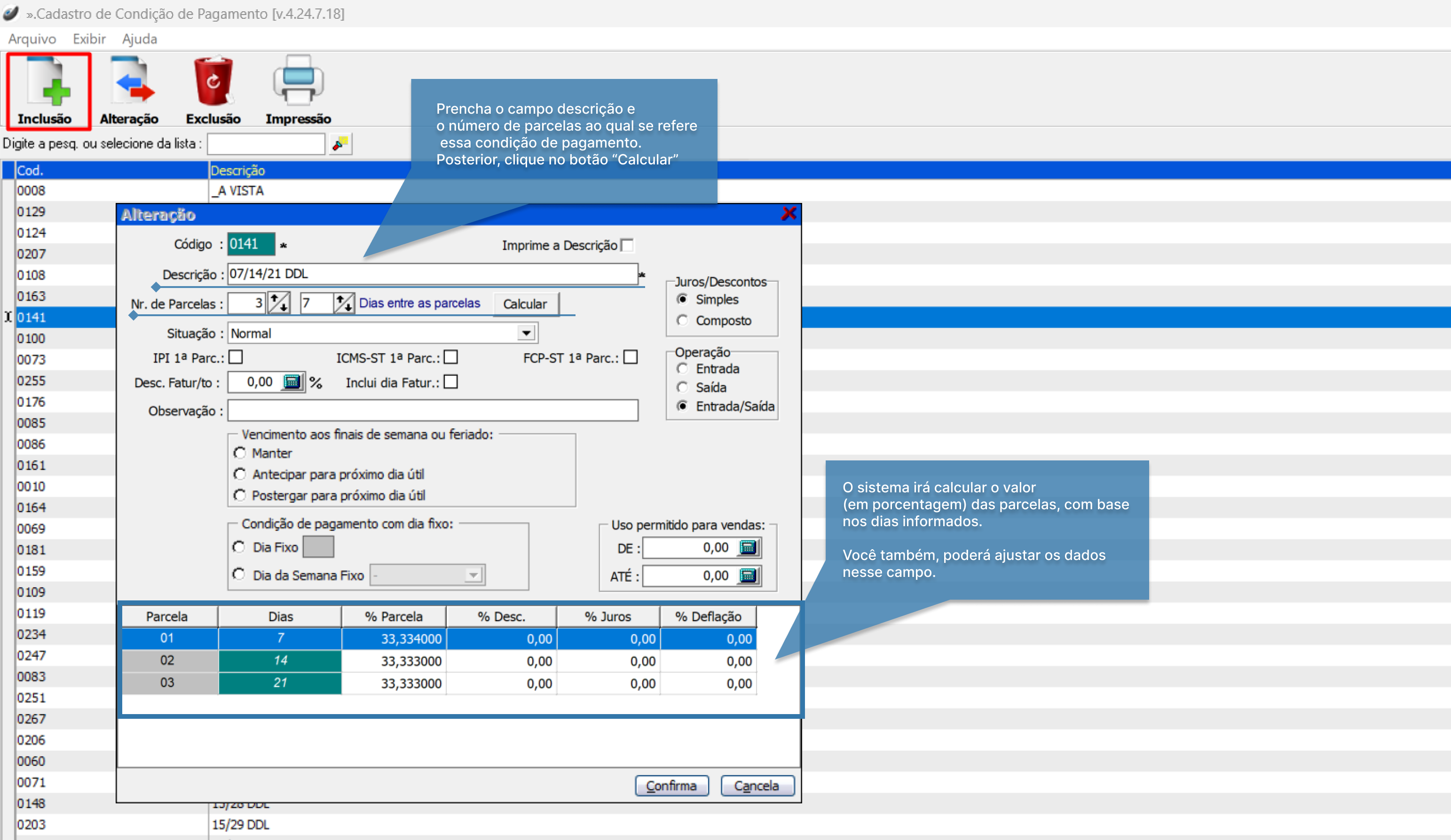 Se para: Inclusão / Alteração / Exclusão / Impressão
