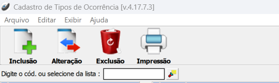 Para inserir um novo cadastro, clique no botão "Inclusão"