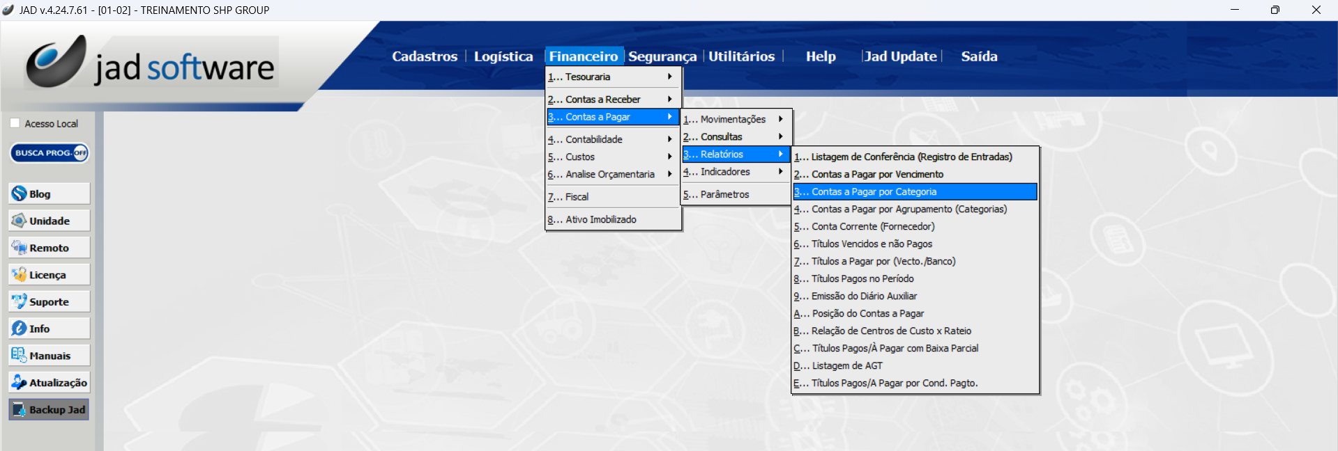 Financeiro > Relatórios > Contas a Pagar por Categoria