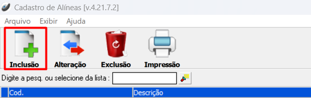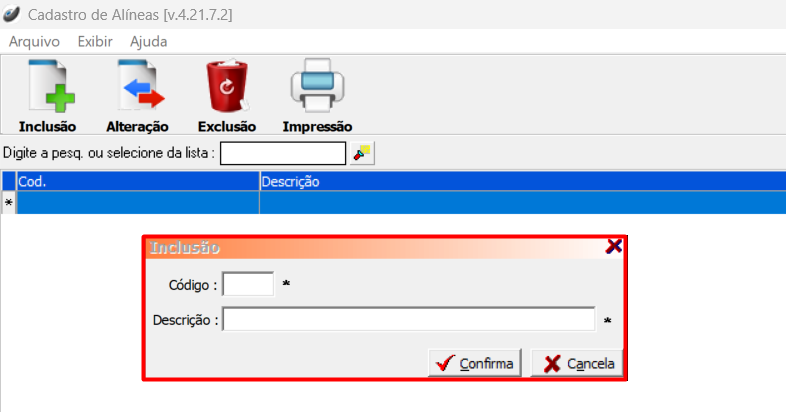 Cadastro de Alíneas