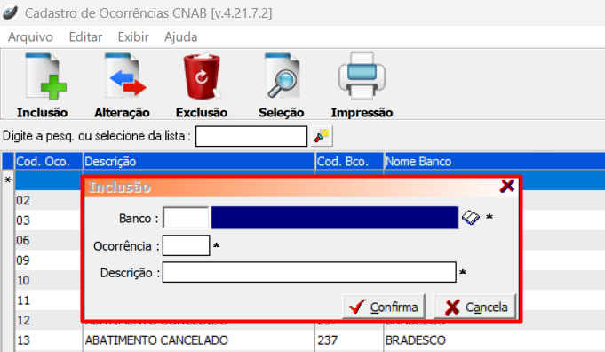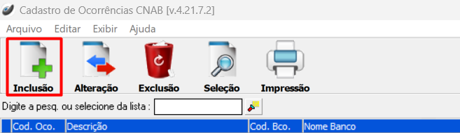 Cadastro de Ocorrências CNAB