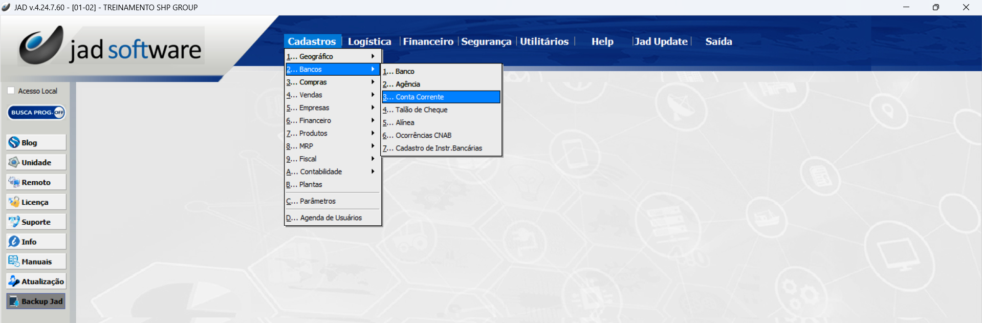 Cadastros > Bancos > Banco
