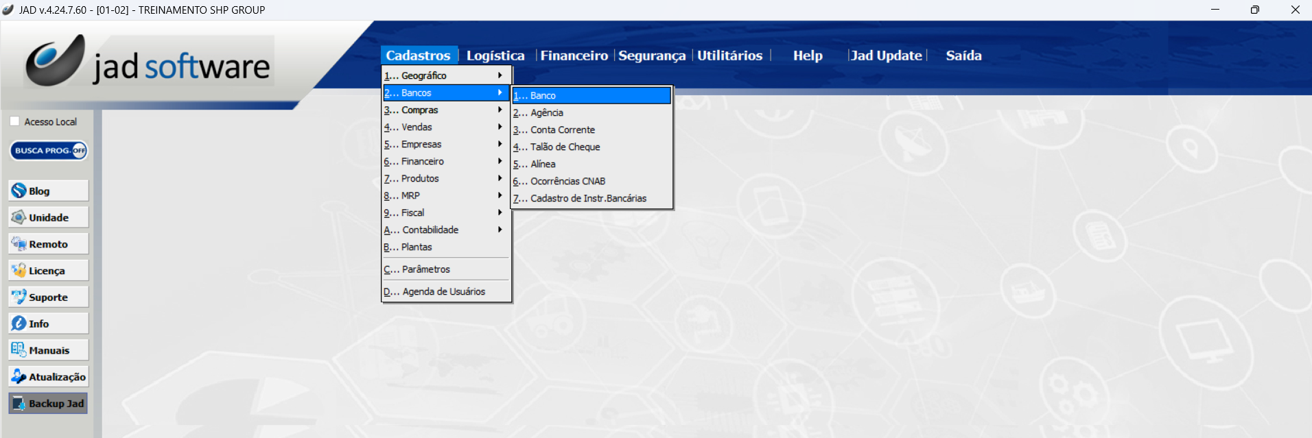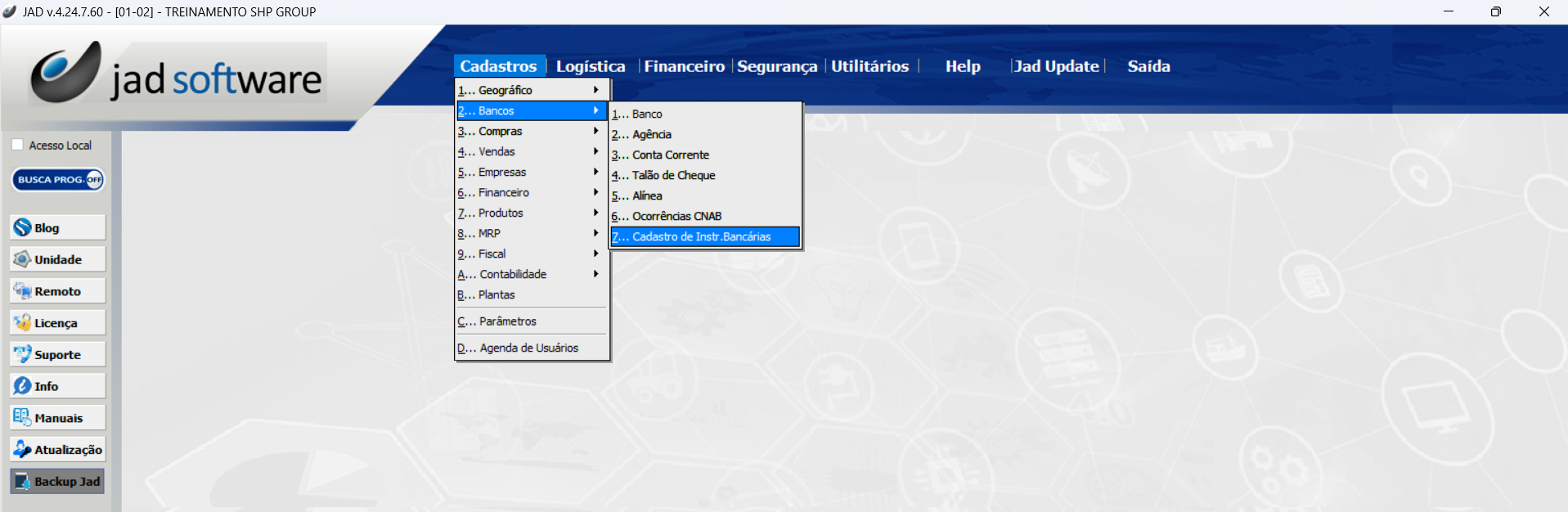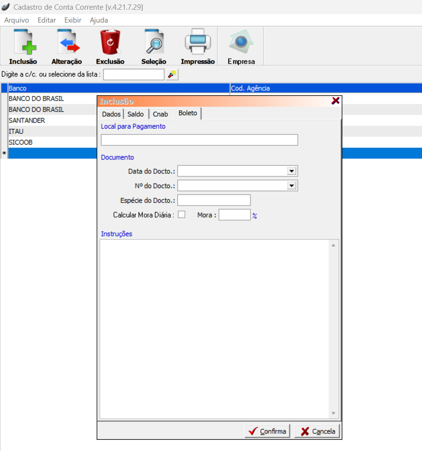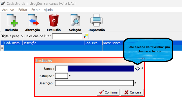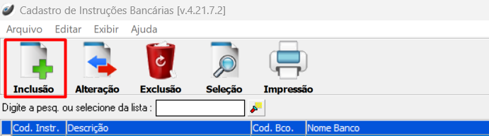 Cadastros > Bancos > Cadastro de Instru. Bancárias
