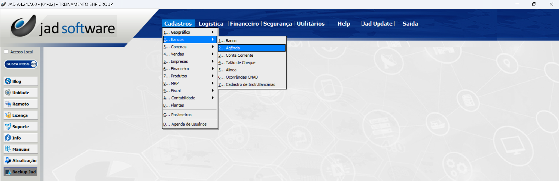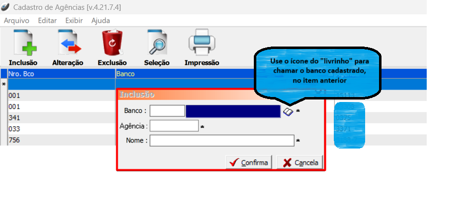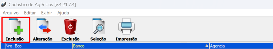 Cadastros > Bancos > Agência