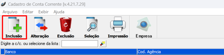 Cadastros > Bancos > Conta Corrente