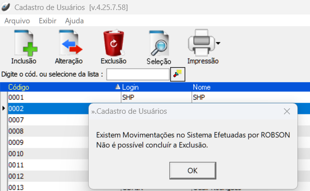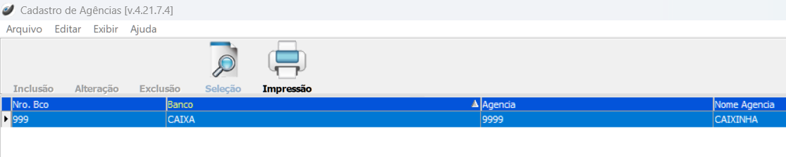 O acesso a este usuário ficou limitado somente aos botões Seleção e Impressão do módulo Cadastros > Bancos > Agência