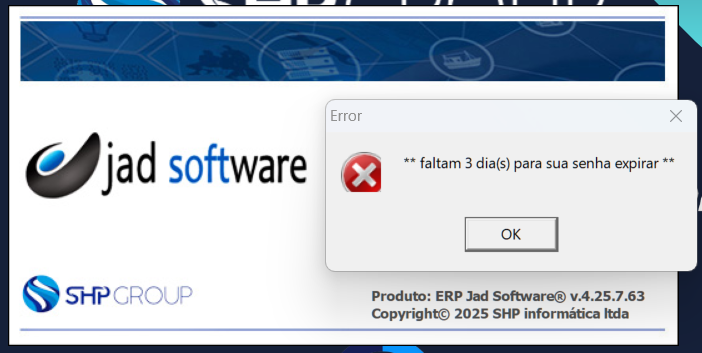 O sistema irá notificar na tela de login com antecedência, da seguinte forma: