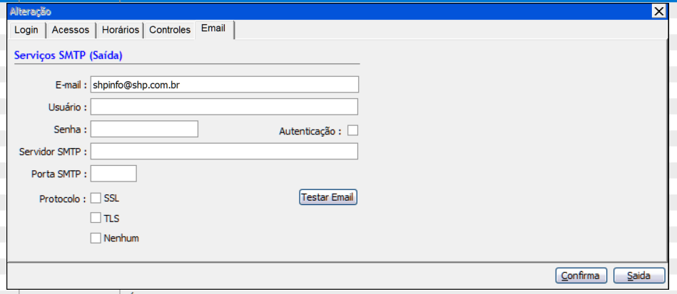 Para a última aba "Email" Se refere as parametrizações do e-mail de saída.