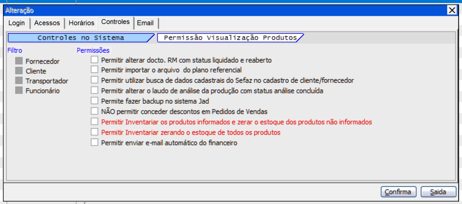 Controle no Sistema"