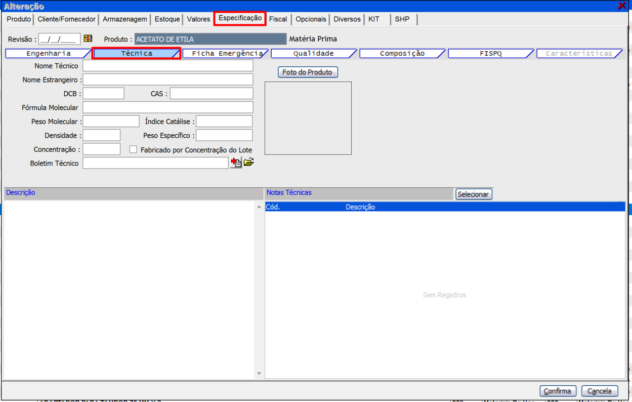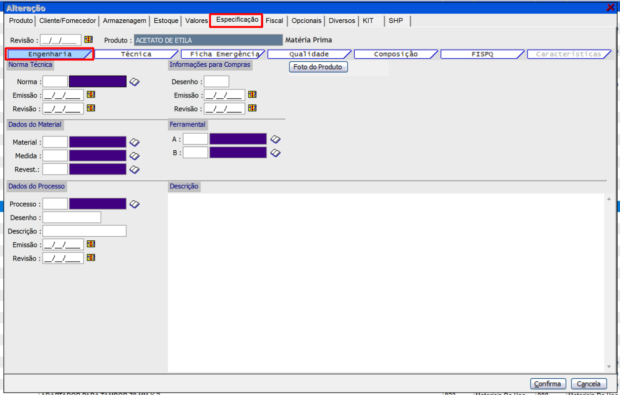 Ficha "Especificação"