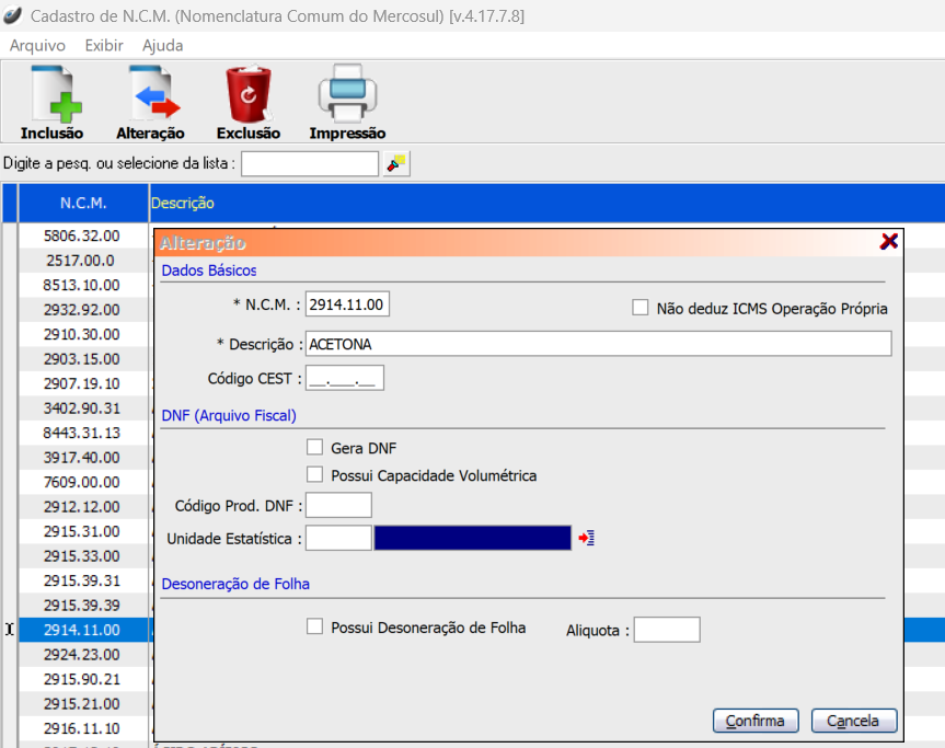 Cadastro NCM