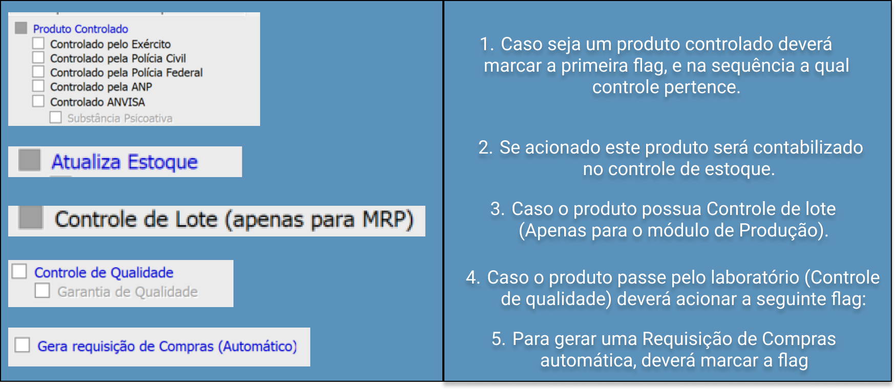 no entanto algumas dessas flags são cruciais para o funcionamento correto do produto dentro do sistema: