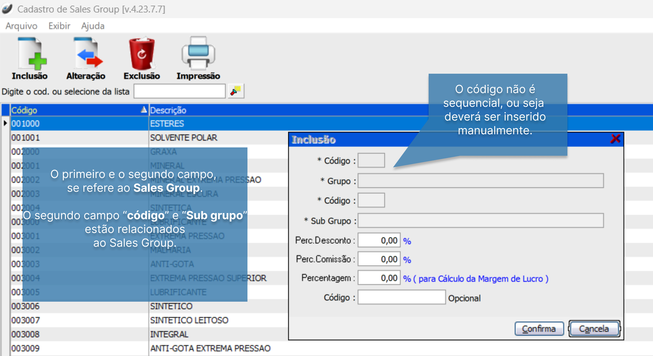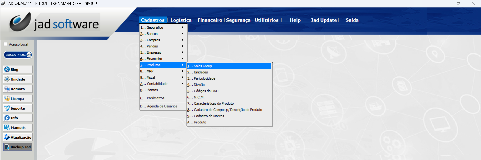 Cadastros > Produtos > Sales Group