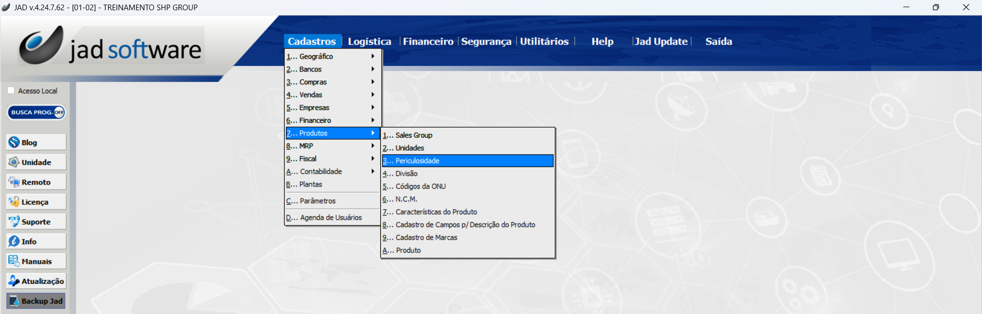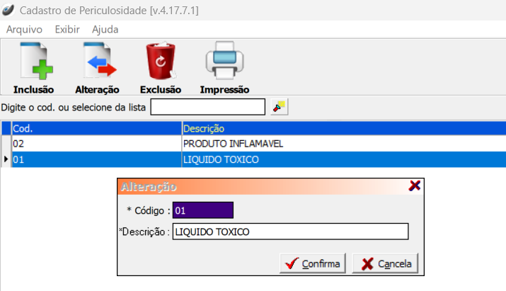 Cadastros > Produtos > Periculosidade