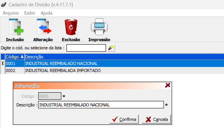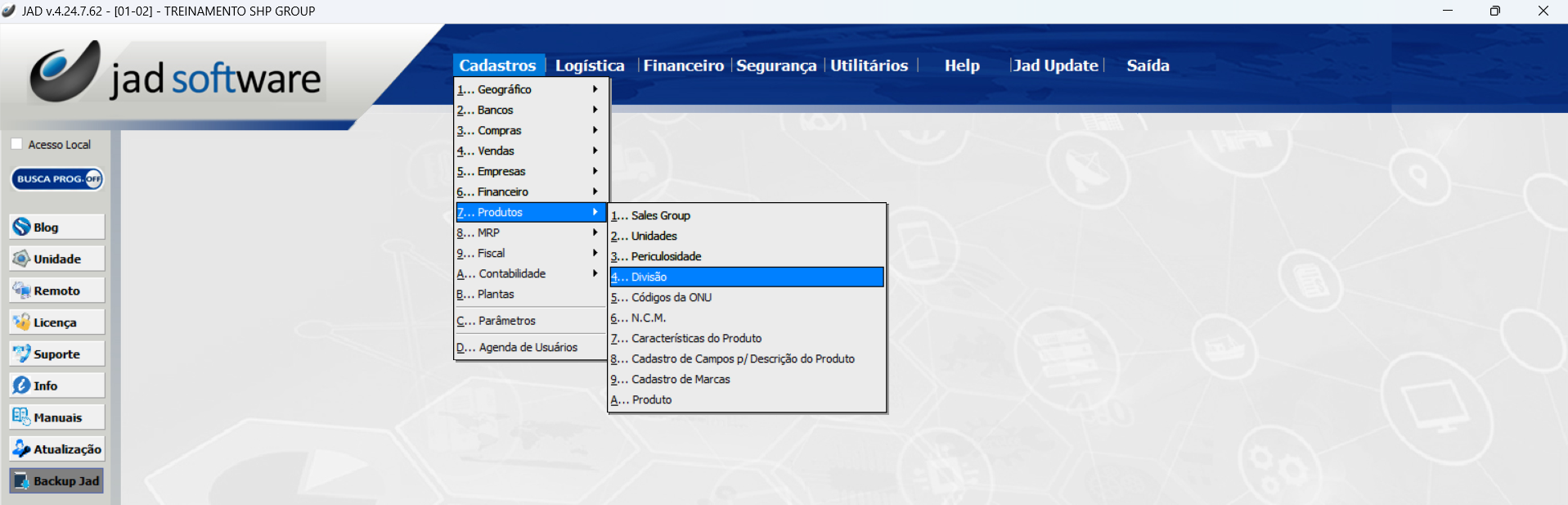 Cadastros > Produtos > Divisão