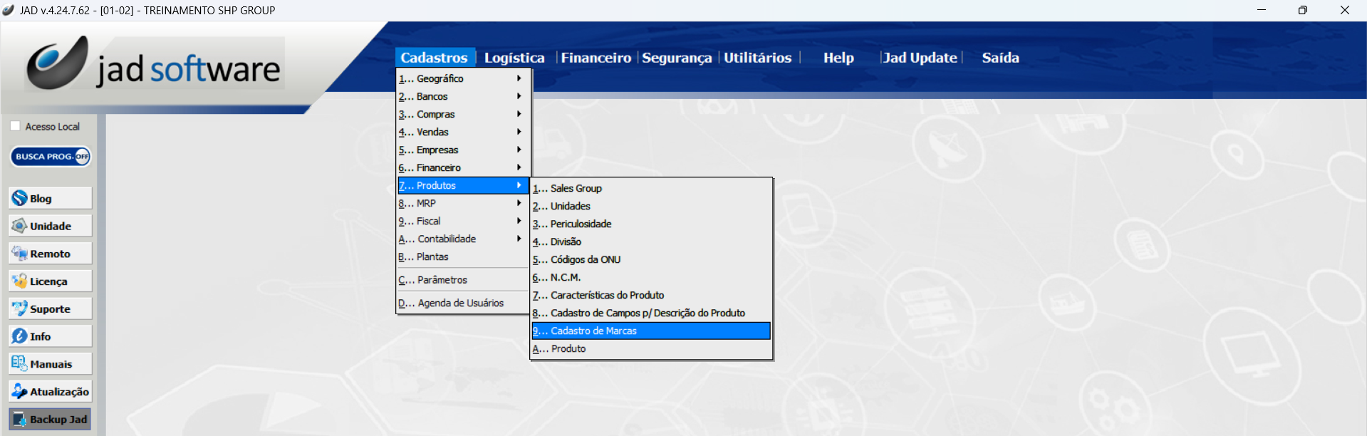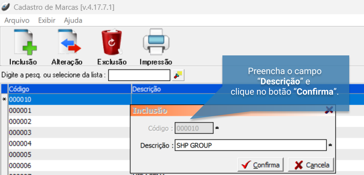 Cadastros > Produtos > Cadastro de Marcas
