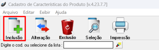 Cadastros > Produtos > Características do Produto