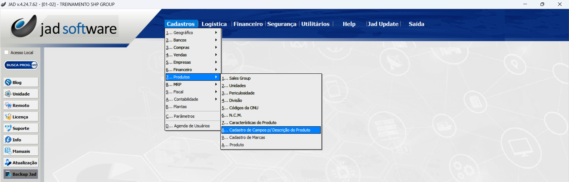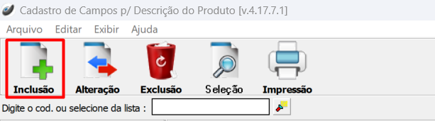 Cadastros > Produtos > Cadastro de Campos para Descrição do Produto