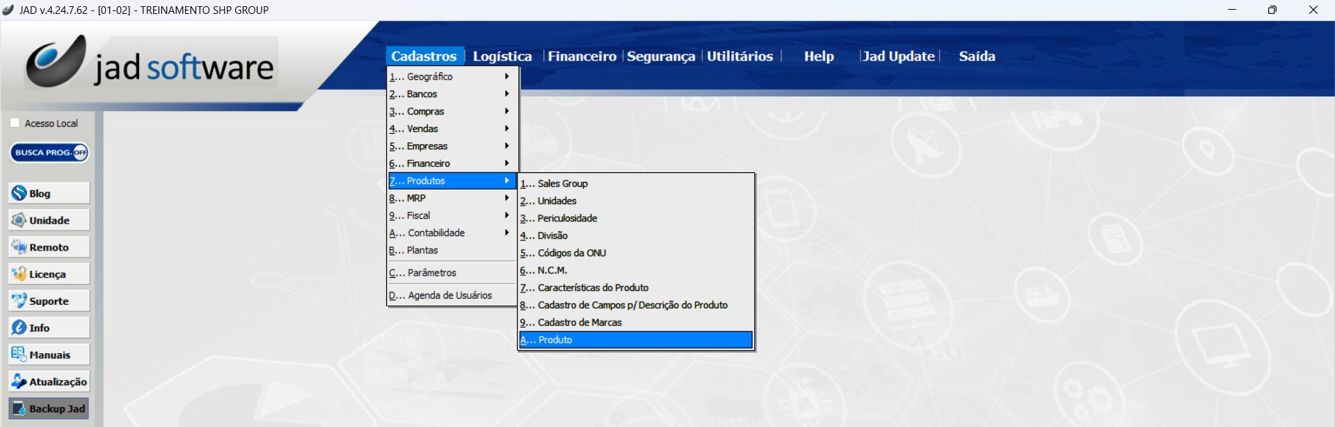 Cadastros > Produtos > Produto
