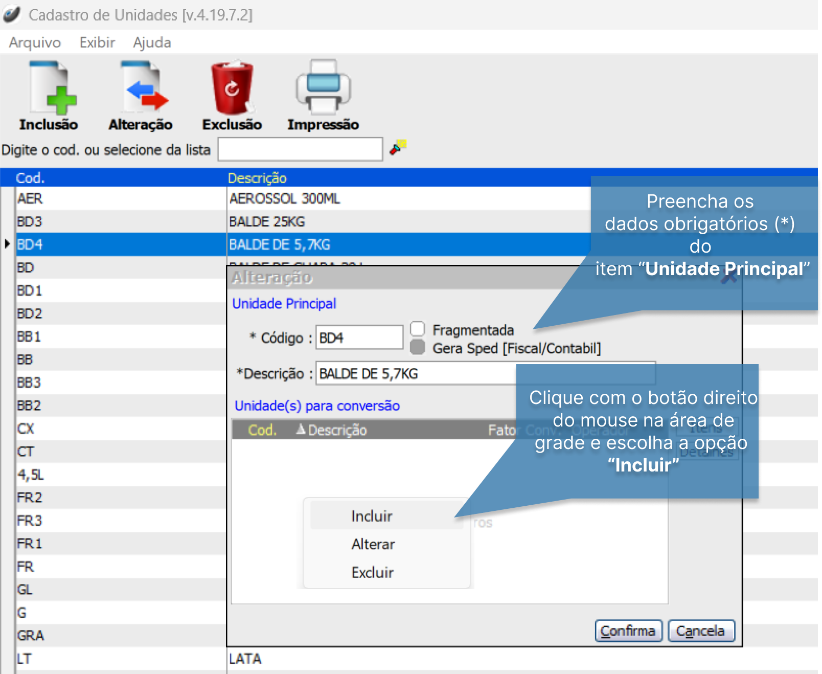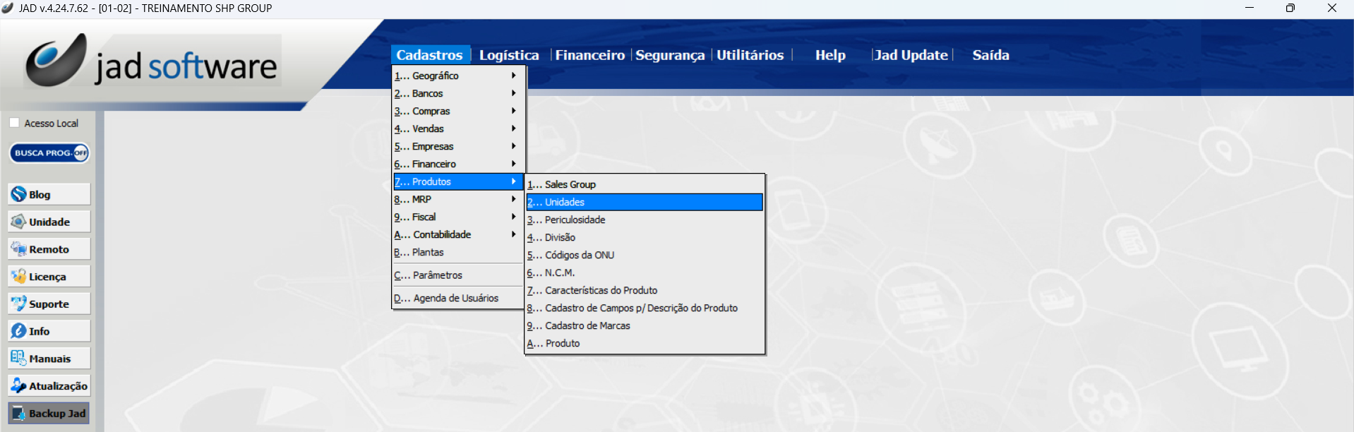 Cadastros > Produtos > Unidades