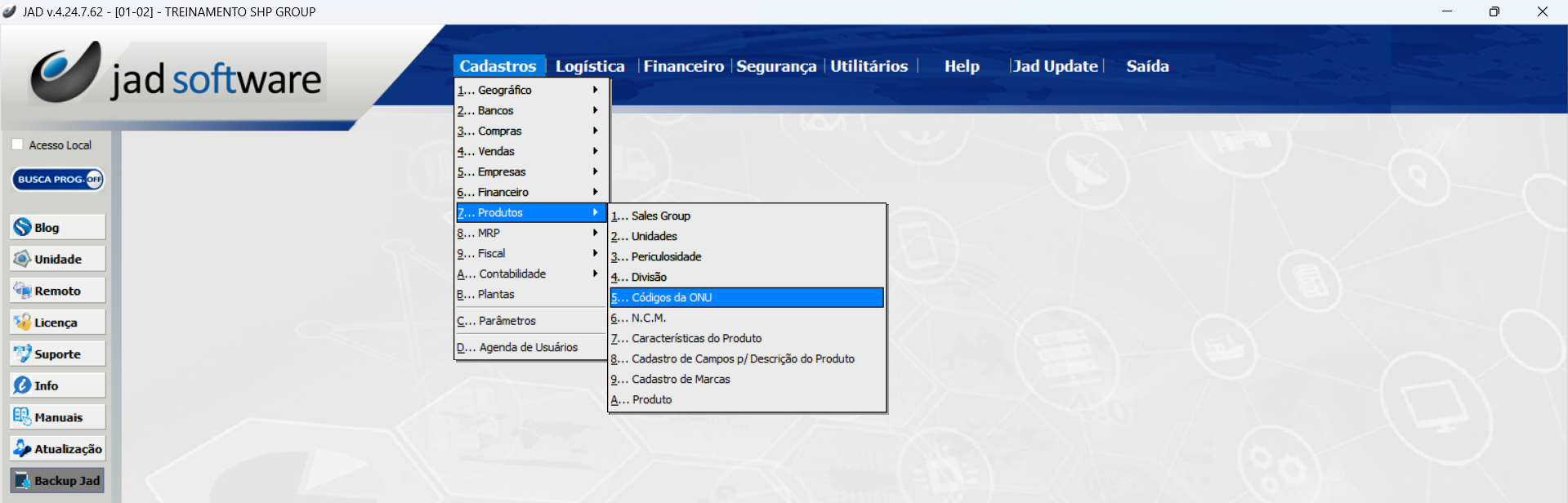 Cadastros > Produtos > Códigos da ONU