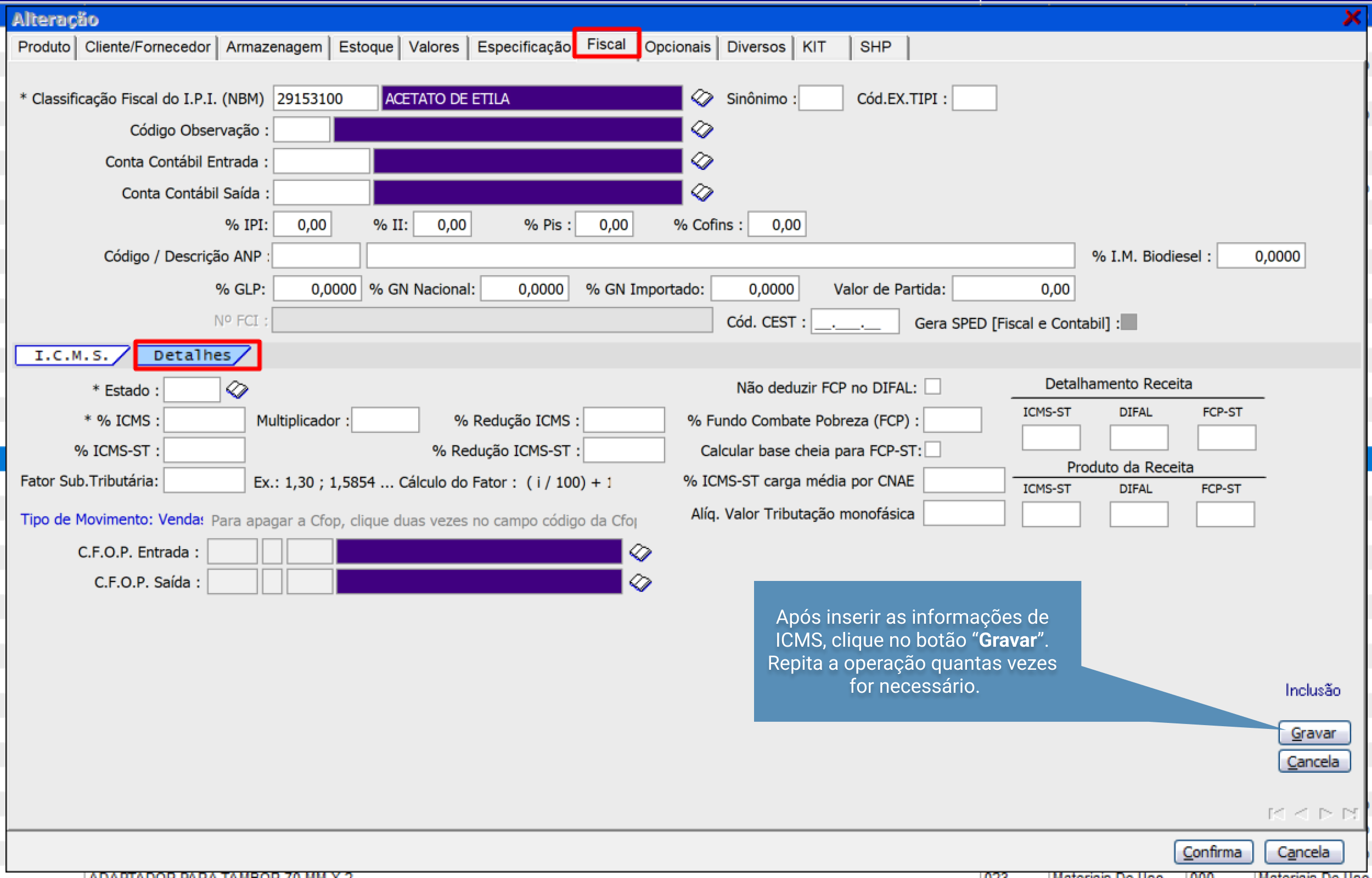 Cadastros > Produtos > NCM