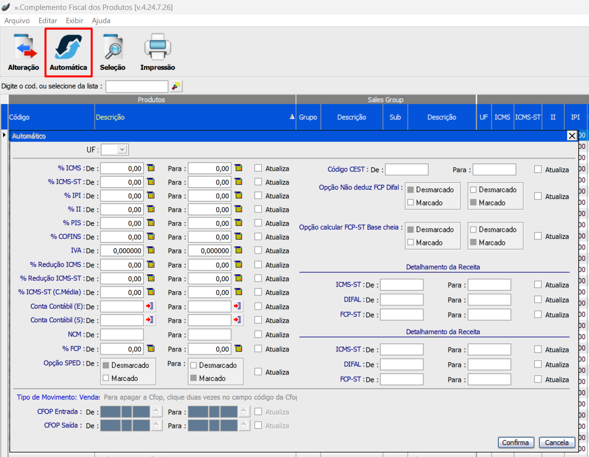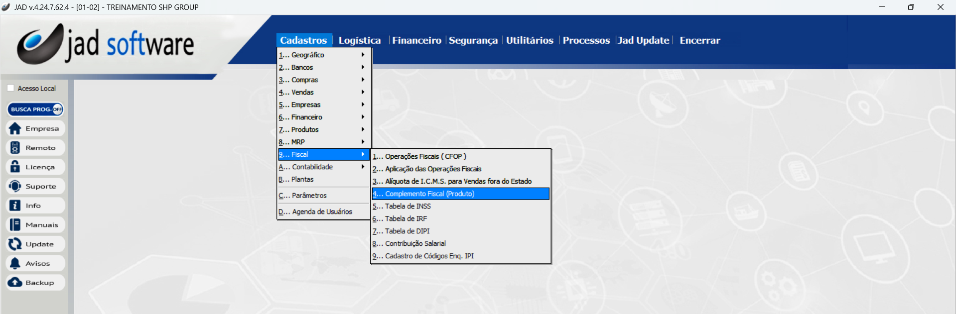 Cadastros > Fiscal > Complemento Fiscal (Produto)