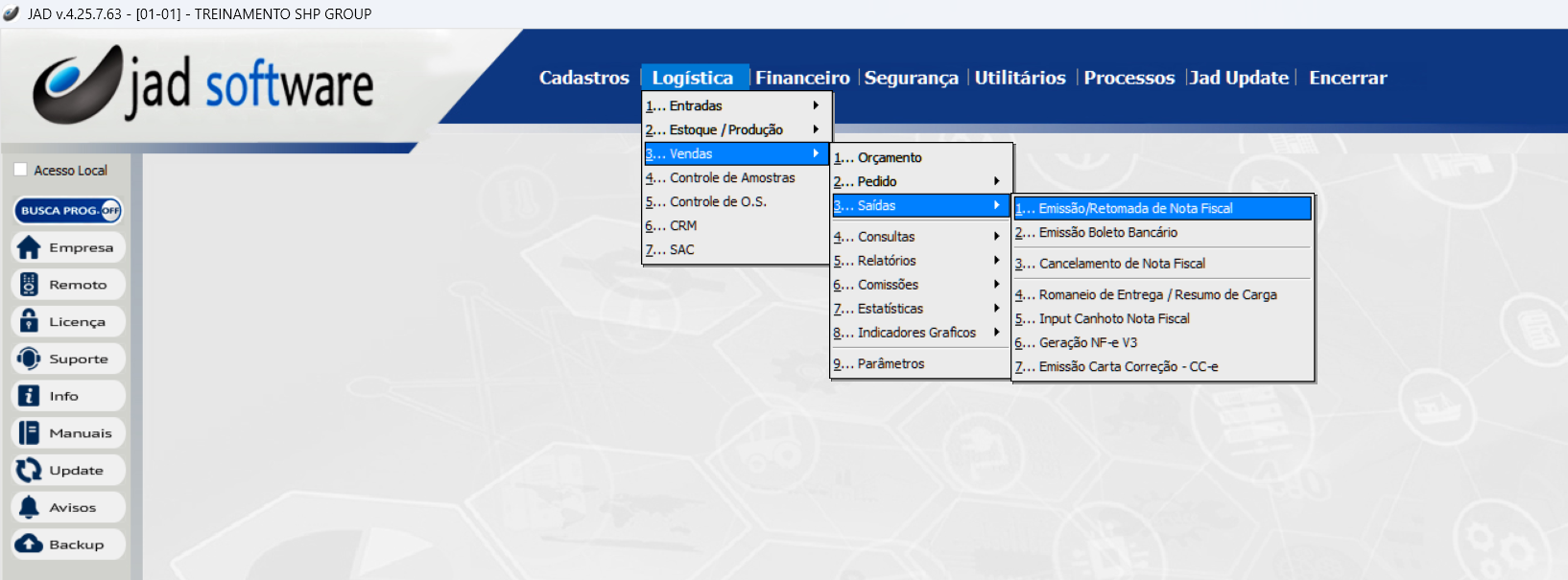 Em emissão de NF-e deverá proceder como a emissão de uma nota fiscal normal, clique sobre o botão "