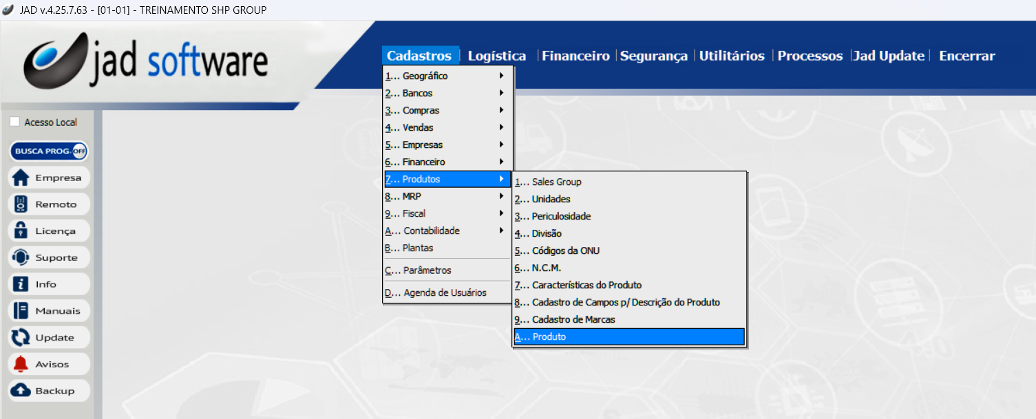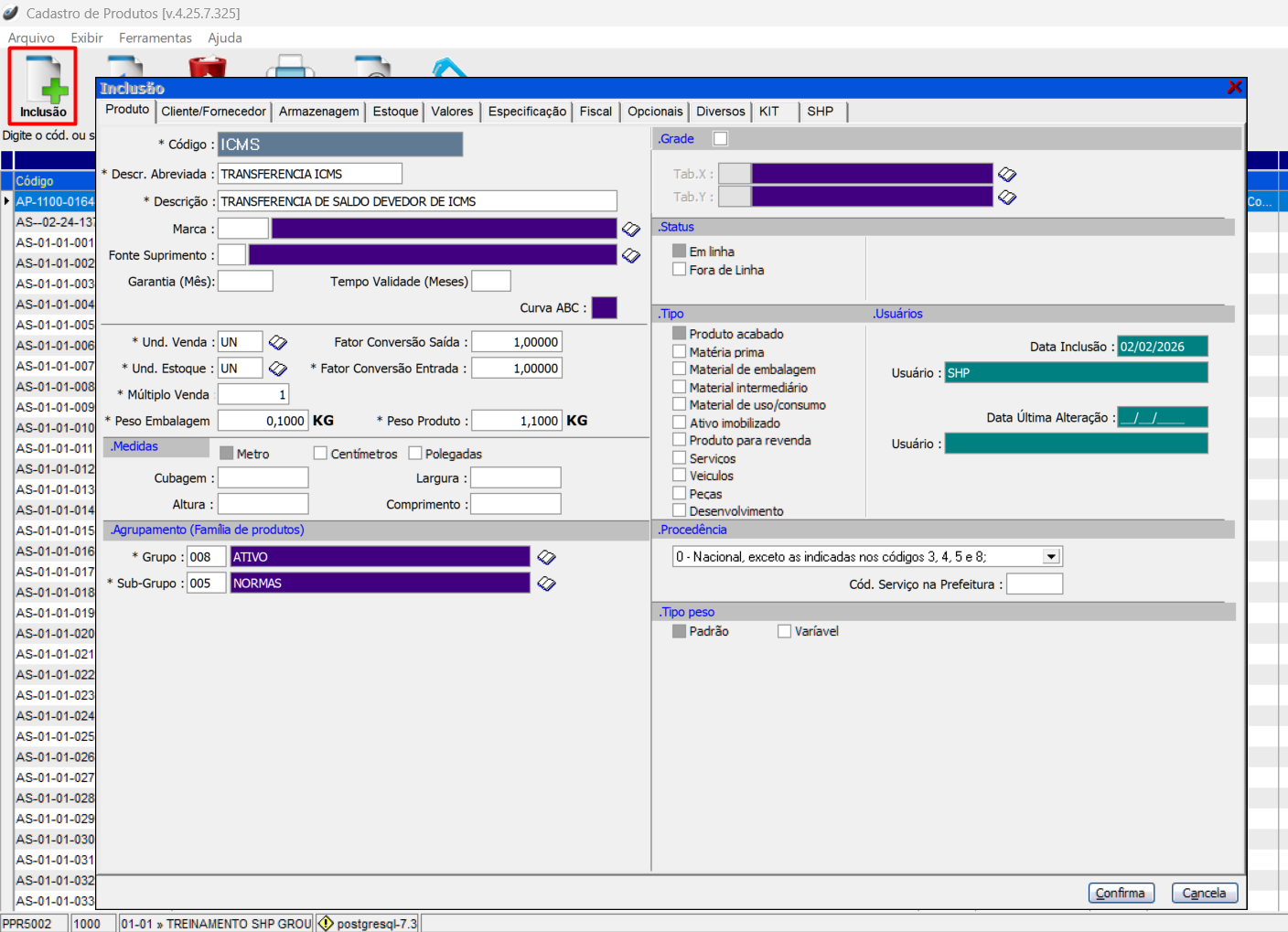 Confirma" e em seguida iremos cadastrar o produto que será usado para a emissão deste tipo de NF.