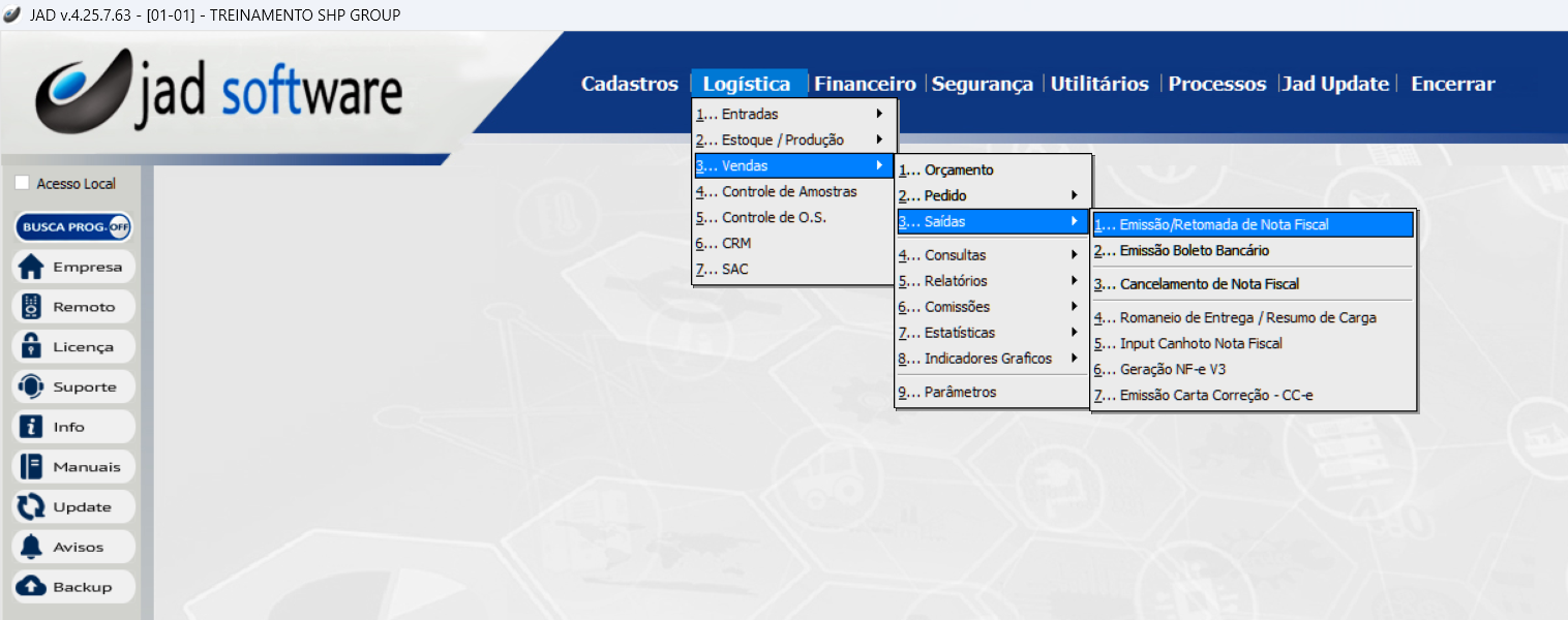 Para acessar ao módulo de Emissão de NF-e (PPV0602.exe)