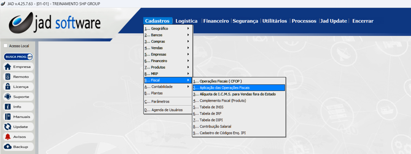 Cadastros > Fiscal > Aplicação das Operações Fiscais