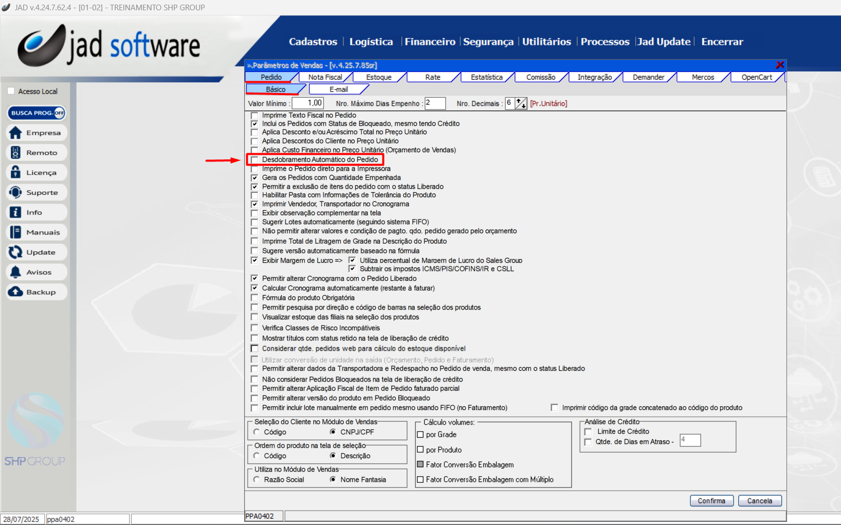 Logística > Vendas > Parâmetros