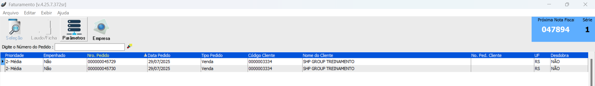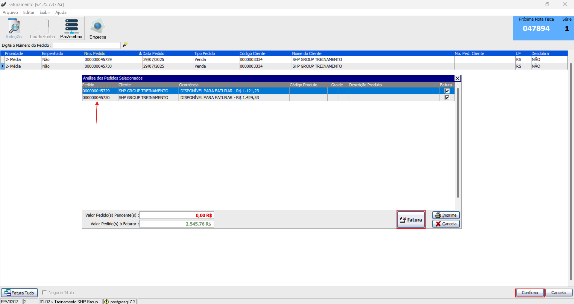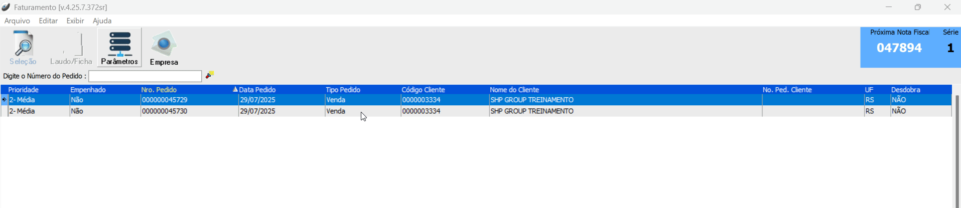 Após seguir as orientações acima e os parâmetros descritos estão de acordo, agora vamos fazer o faturamento agrupando os pedidos em uma só nota fiscal.