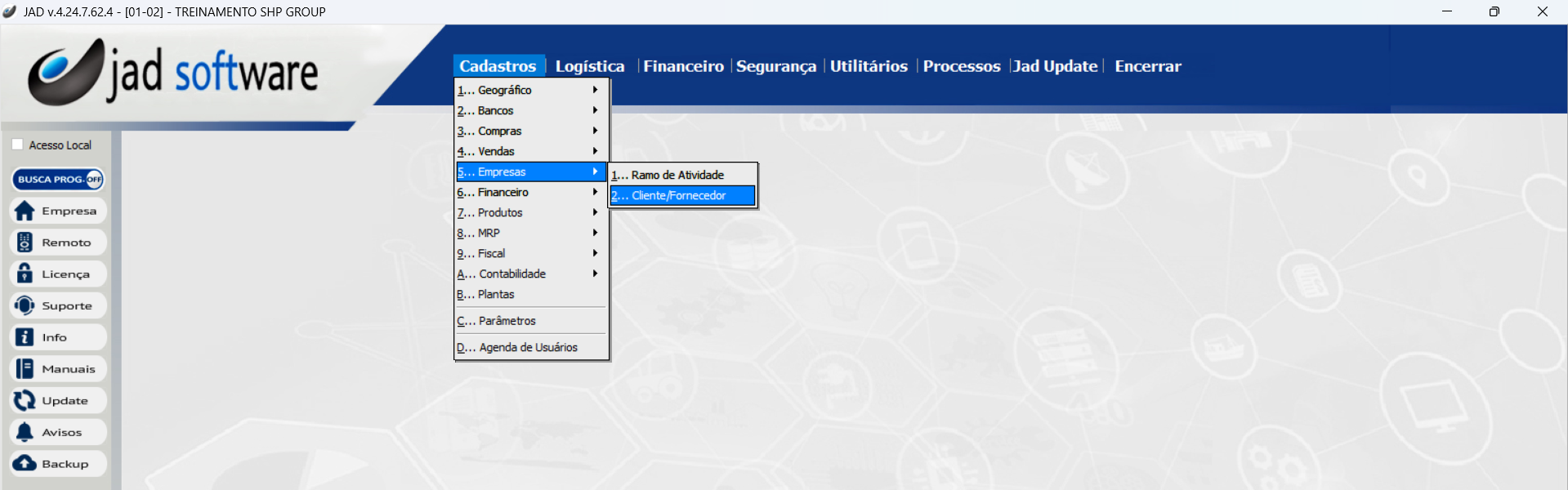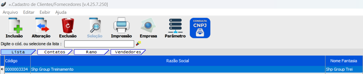 Cadastros > Empresas > Cliente/Fornecedor