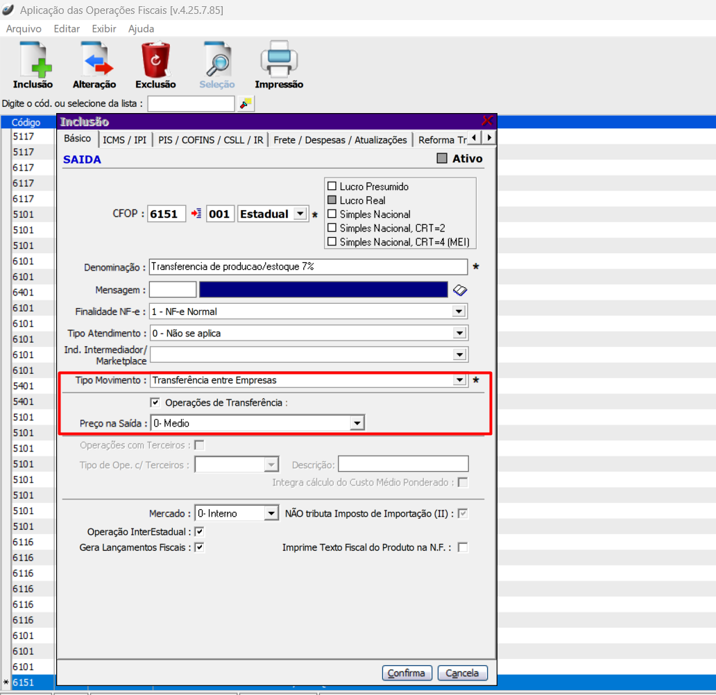 2) Na imagem acima o campo "Operações de Transferência" tem que estar clicado