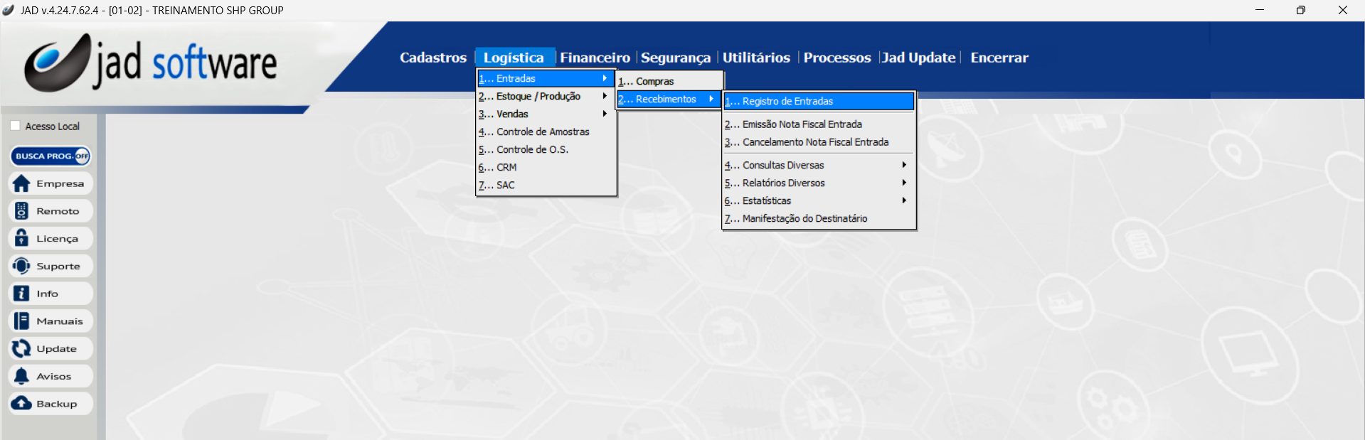 Logística > Entradas > Recebimentos > Registro de Entradas
