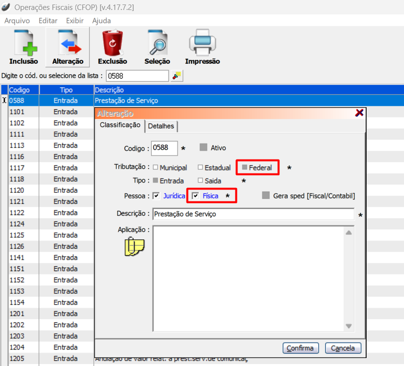 Aplicação da Operação Fiscal