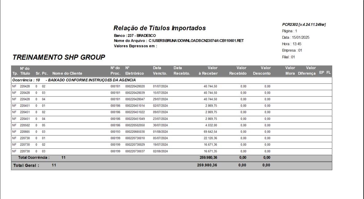O sistema faz a leitura do arquivo e transmite em tela de forma simples e clara o que consta no arquivo retorno.