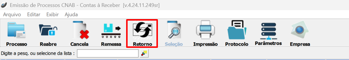 Ao abrir o módulo, localize o botão de ação "Retorno"