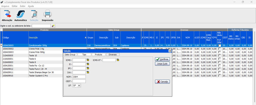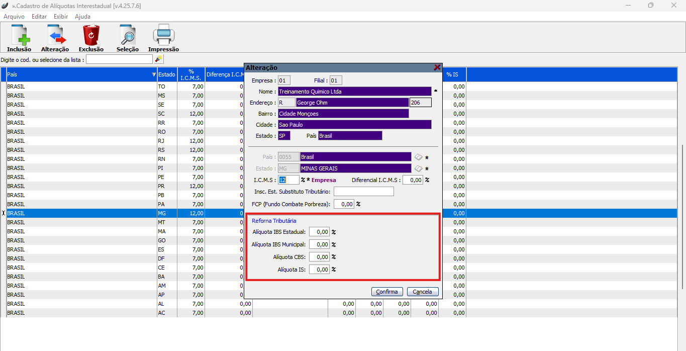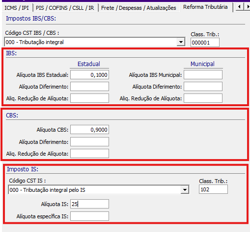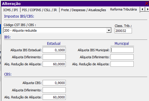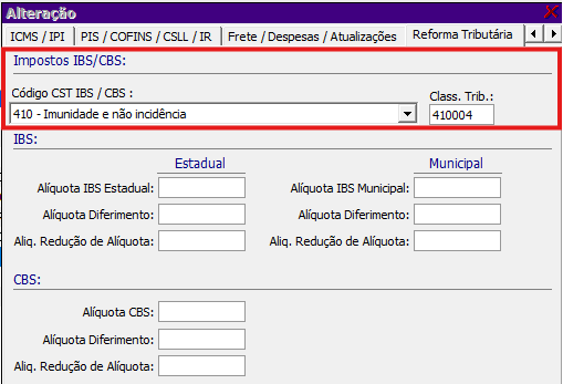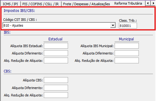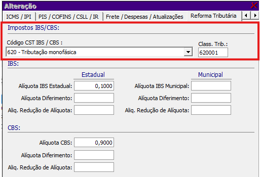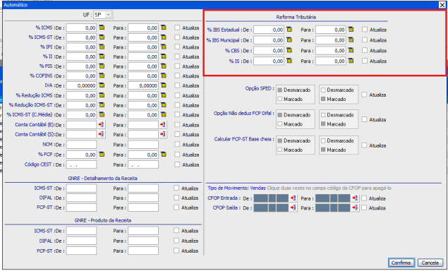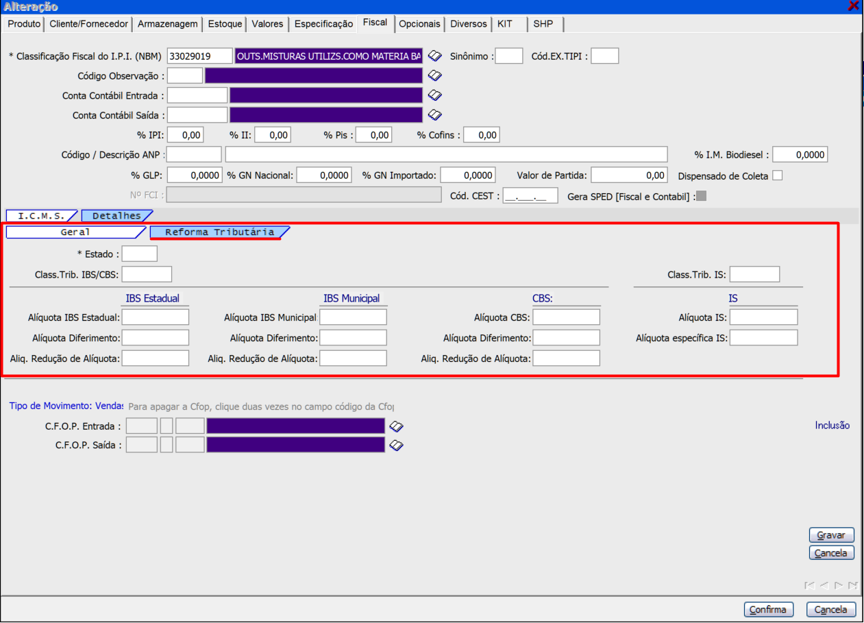 - PCA9602 – Cadastro da Aplicação da Operação Fiscal → Ficha Reforma Tributária