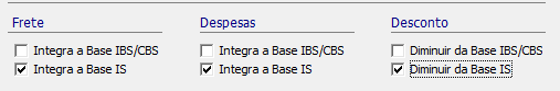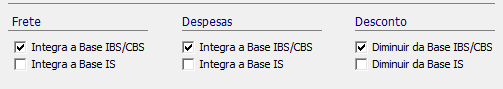 Se houver na NFe destaque de Frete, Despesas e Desconto eles deverão estar indicados na flags abaixo caso houver necessidade:
