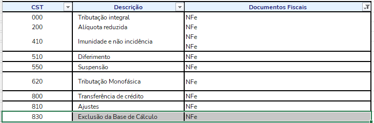 Assim, o CST 830 não significa isenção ou imunidade, mas sim exclusão parcial da base de cálculo, mantendo a operação tributável apenas sobre a parcela líquida.
