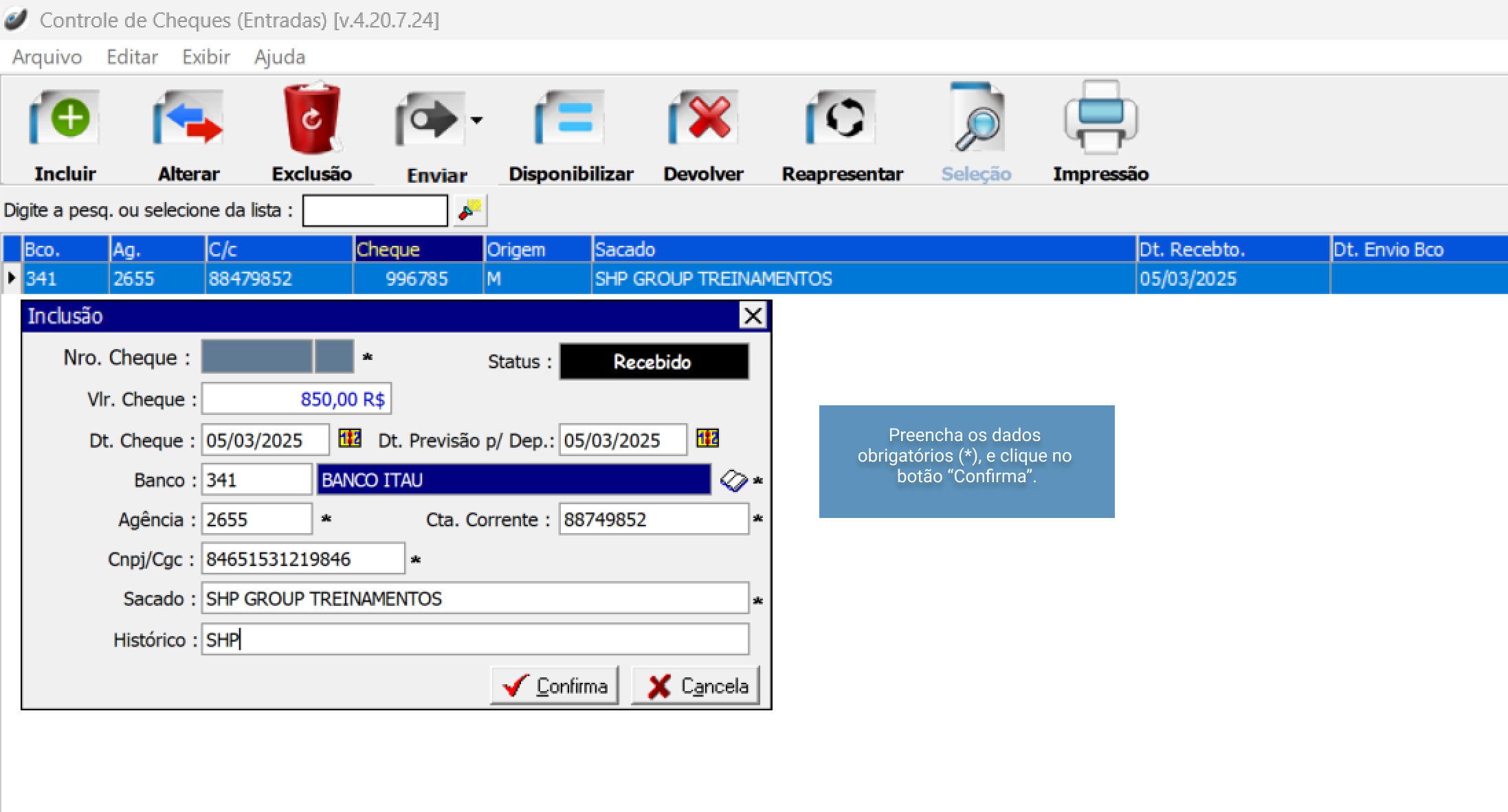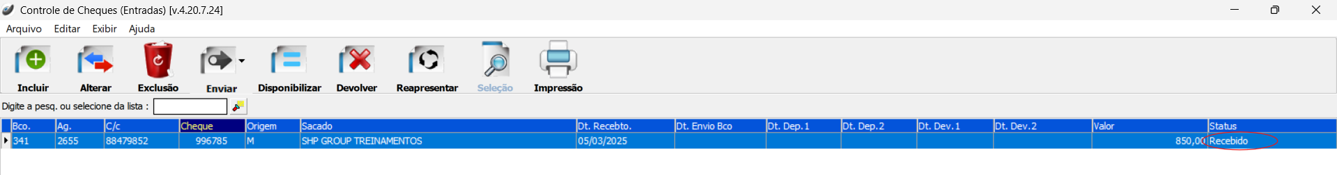Sempre verifique o “Status” do cheque após realizada a operação.