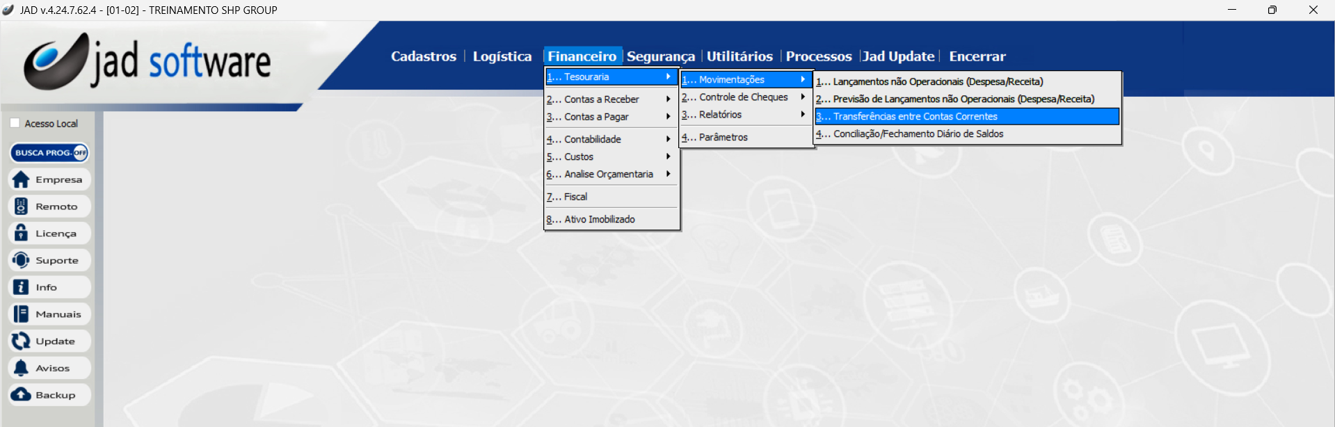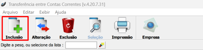 Financeiro > Tesouraria > Movimentações > Transferência entre Contas Correntes