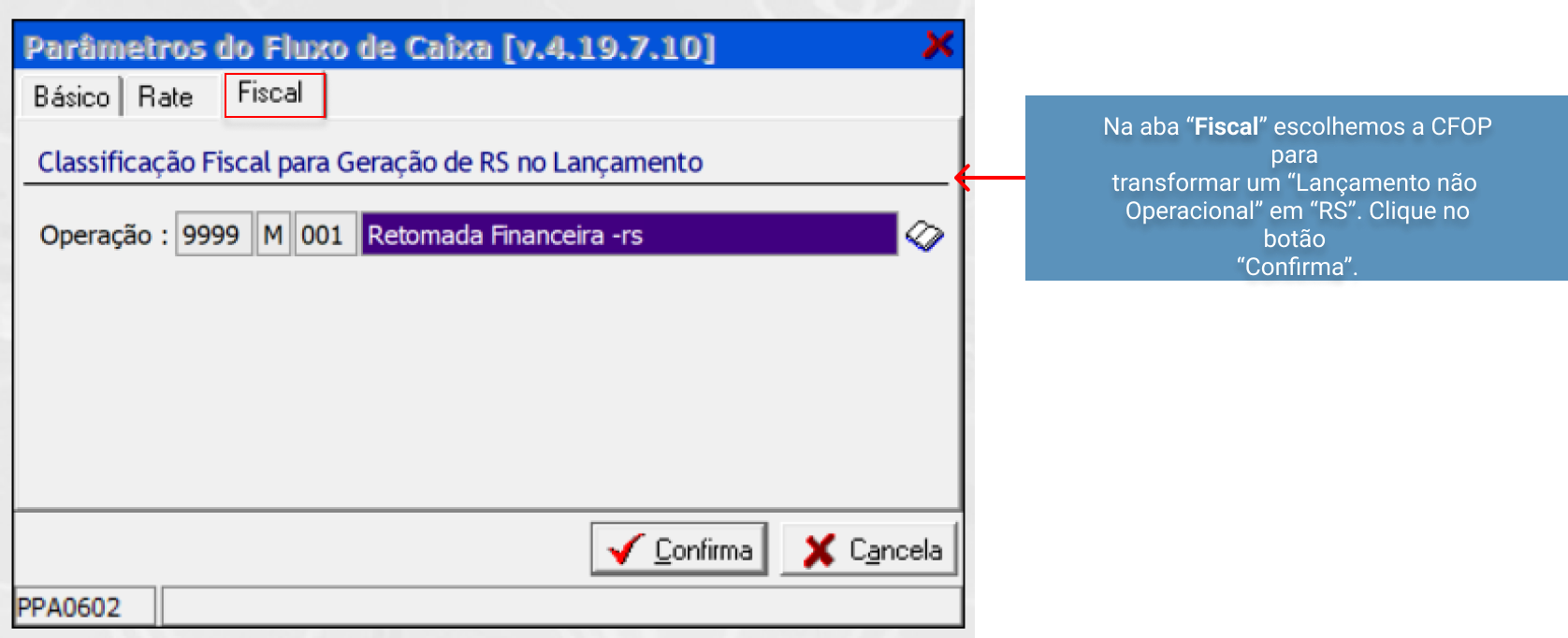 Lembrando que ao indicar a CFOP, nos parâmetros de fluxo de caixa. Deverá fechar o módulo de Lançamentos não Operacionais. Para efetivar a alteração.