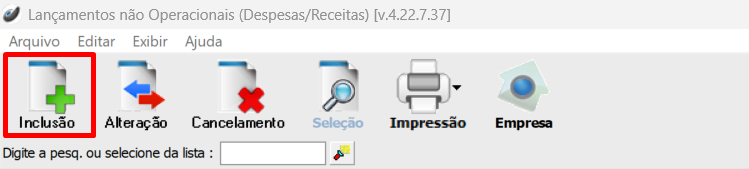 Financeiro > Tesouraria > Movimentações > Lançamentos não Operacionais (Despesa/Receita)