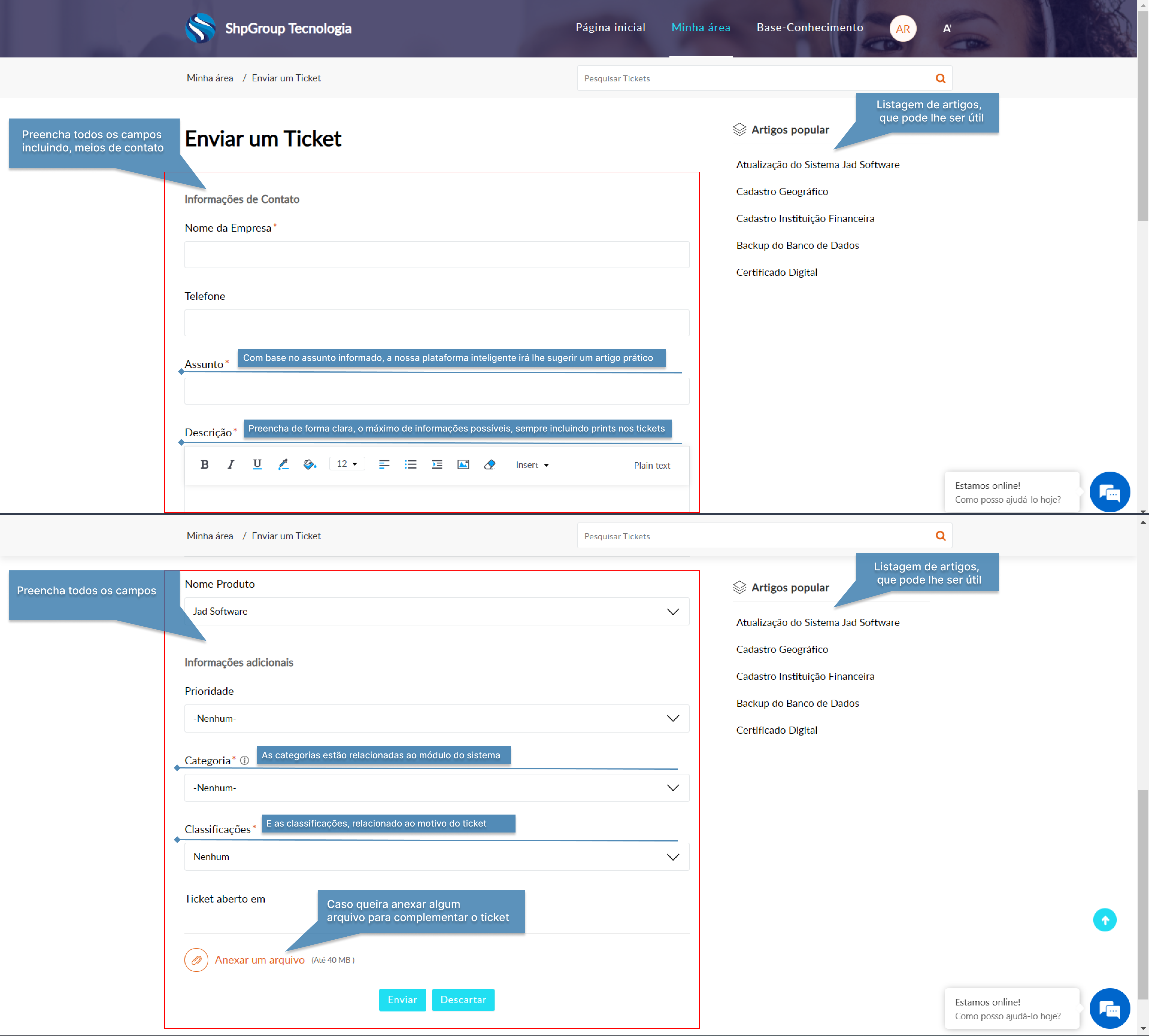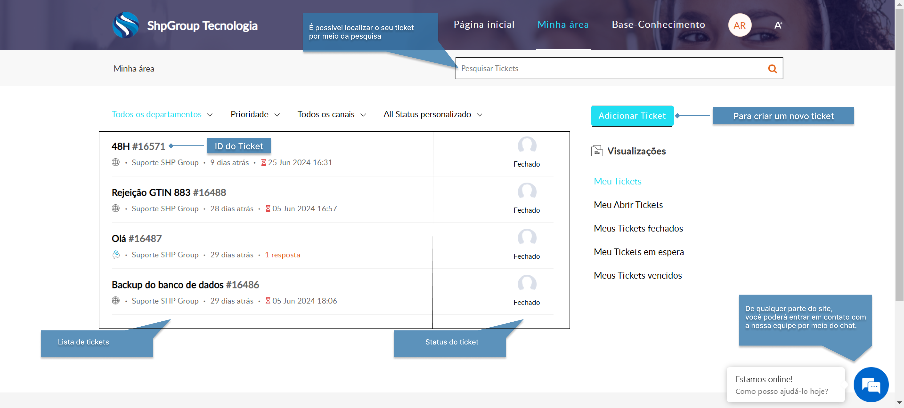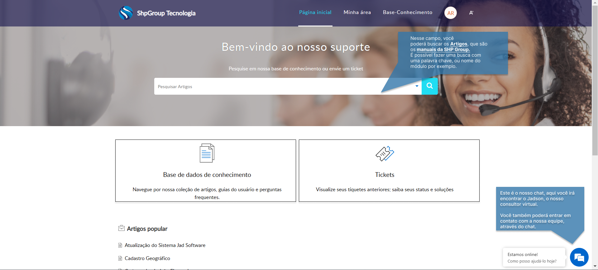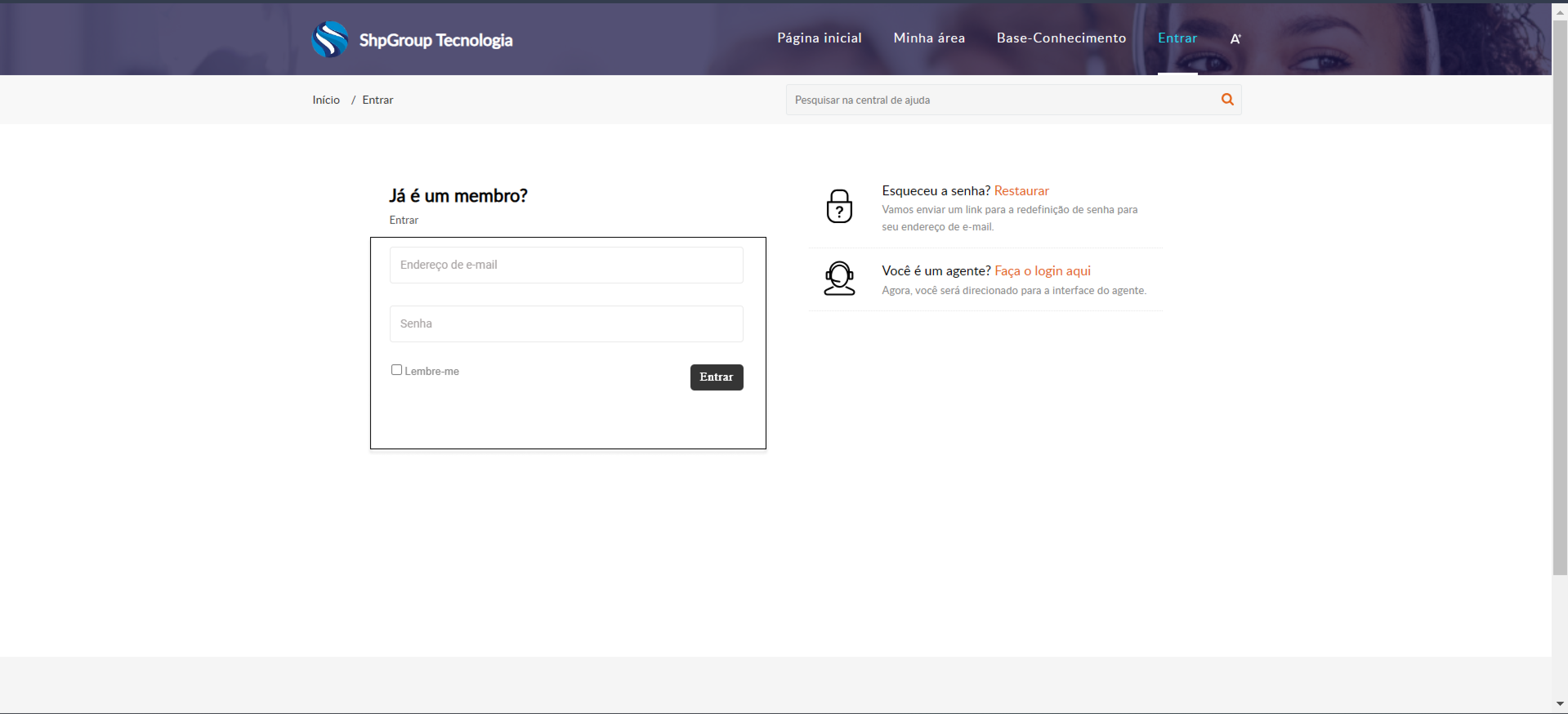 Após ter logado, essa é a página inicial da nossa central de ajuda:
